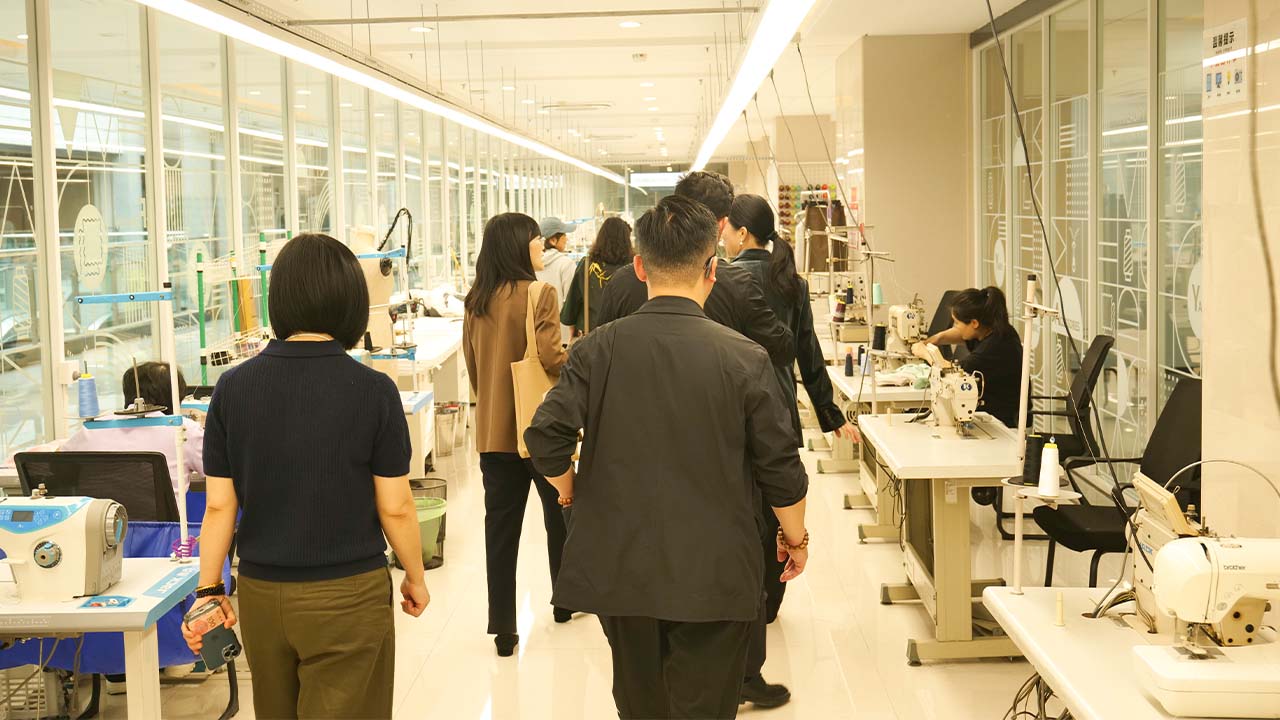 Guided by Teacher Cai, the Soochow delegation began their journey in ‘Threadify Fashion Complex’, home to tens of thousands of material samples. They then explored the Designer Maker Space, where inspiration meets commercialization — learning how creative ideas evolve into market-ready designs through precise alignment with real consumer needs.