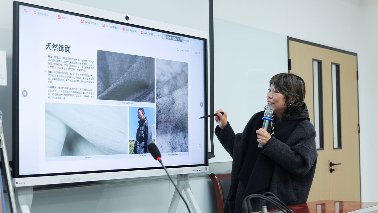 Following the tour, Professor Cai presented key insights into the upcoming Autumn/Winter 2026–27 fabric trends.