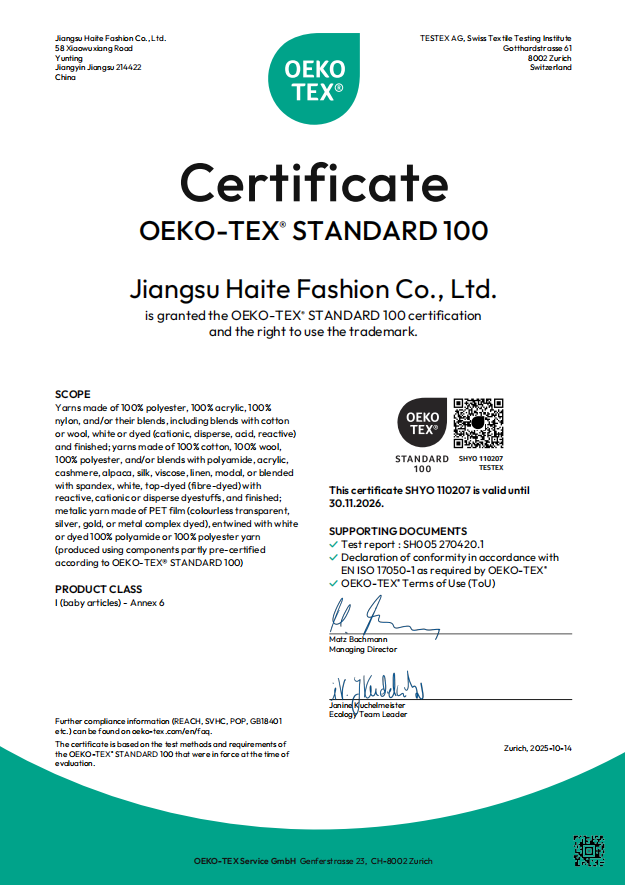 JIANGSU HAITE FASHION CO.,LTD